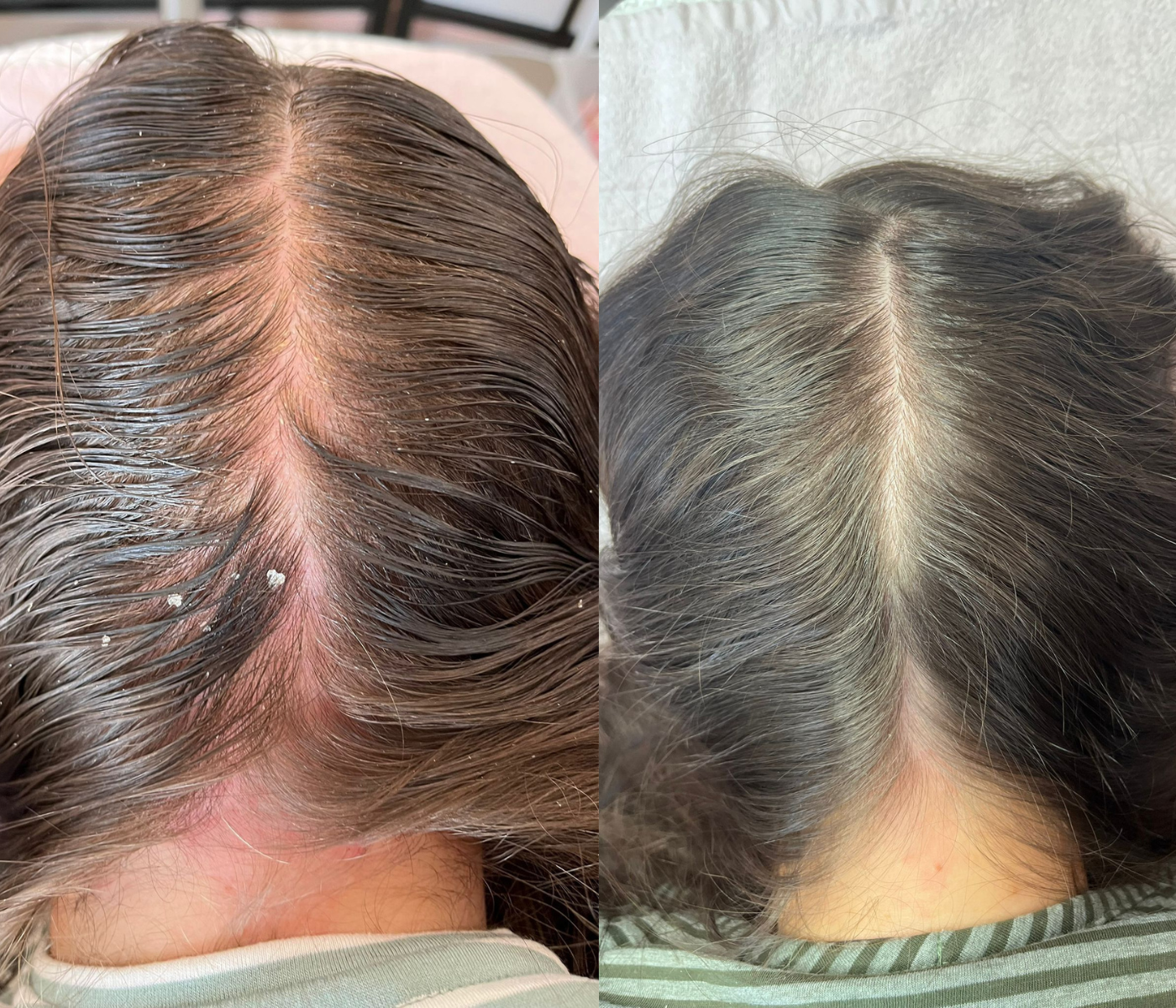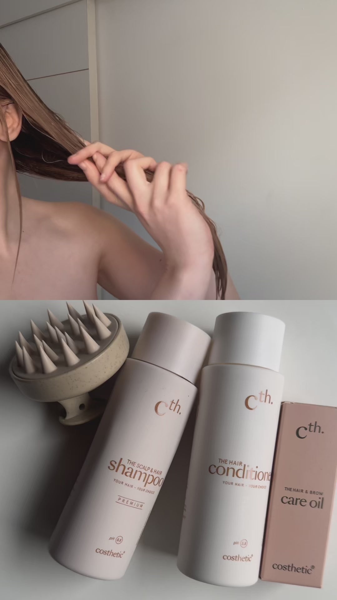 3️⃣ Gently massage in – Massage into the scalp with your fingers or the scalp brush .